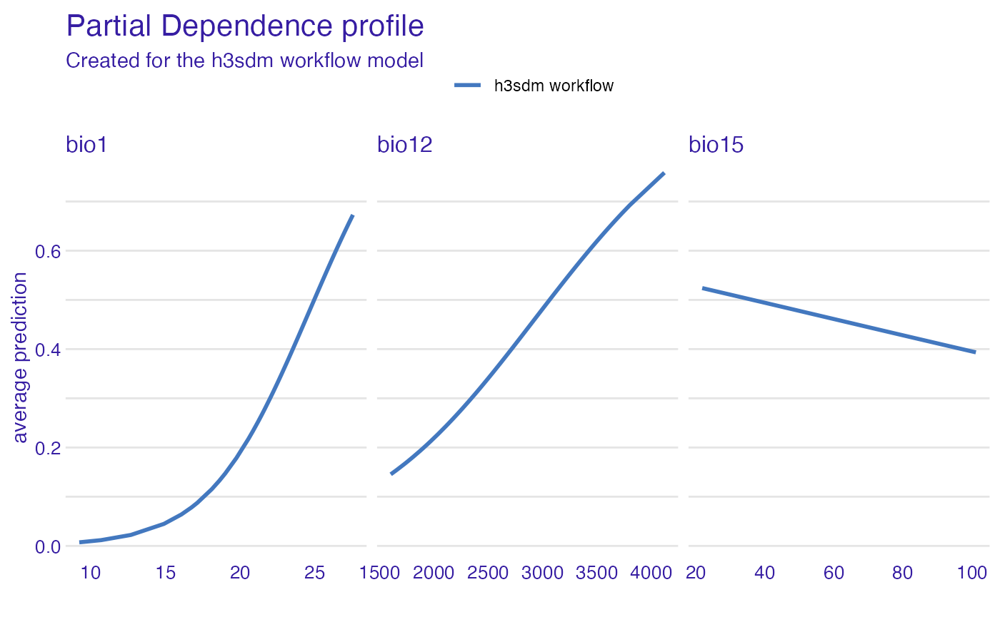 pdp_glm <- partial_dependence(e, variables = c("bio12", "bio1", "bio15"))Now we can plot the PDPs.