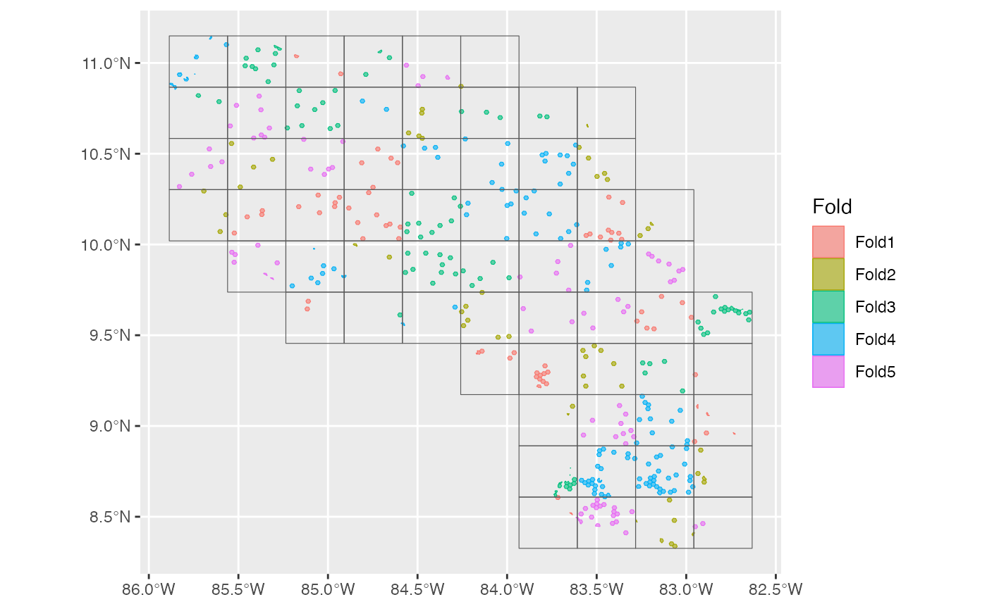 Define spatial blocks for cross-validation to account for spatial autocorrelation.
